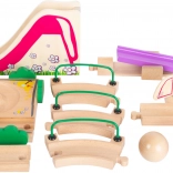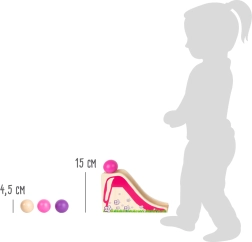 Entdecken Sie die spannende Welt der Kugelbahn, die speziell für die Kleinsten konzipiert wurde! Diese farbenfrohe Holzspielzeugbahn lässt sich einfach zusammenbauen, sodass die großen bunten Kugeln schon bald mit ihrem Rennen beginnen können. Auf der Bahn finden Kinder eine Rutsche, ein Mühlrad und eine Wippe, die für jede Menge Spielspaß sorgen.