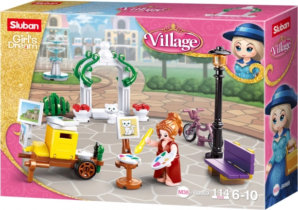 Wir präsentieren das Sluban Mädchentraum Dorf - Malerin im Park, ein Bausteinset, das stundenlangen Spaß und kreatives Spielen bietet. Es enthält 114 Teile und eine Figur mit einzigartigen beweglichen Teilen, die ein einfaches Eintauchen in die Rolle eines Malers an der frischen Luft ermöglichen.