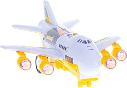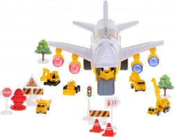 Dieses multifunktionale Set kombiniert ein Transportflugzeug mit einer Mini-Bauwelt. Die Fahrzeuge können über die klappbare vordere Rampe ins Flugzeug fahren, und dank der öffnenden Oberseite haben Kinder einfachen Zugang zur Ladung. Die Triebwerke leuchten mit LED-Lichtern, die das realistische Spielerlebnis unterstützen.