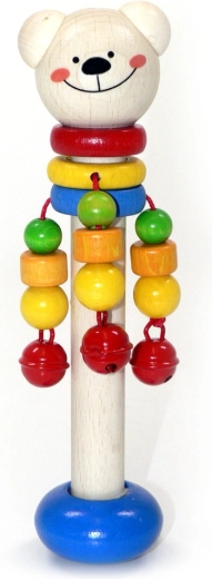 Schenken Sie Kindern ihre ersten musikalischen Erlebnisse mit dieser Holzrassel in Bärenform. Dank des angenehmen und klaren Glöckchenklangs werden sie sie schnell ins Herz schließen. Die hochwertige Verarbeitung aus Naturholz und schonende Farben garantieren sicheres Verwenden und eine lange Lebensdauer.