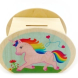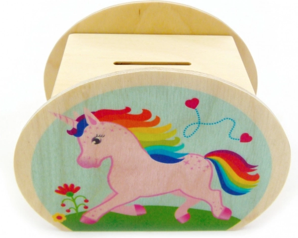 Diese farbenfrohe Spardose mit Einhorn motiviert Kinder zu finanzieller Bildung und vermittelt den Wert des Geldes. Die robuste Verarbeitung aus naturbelassenem Holz sorgt für lange Haltbarkeit und eine angenehme, natürliche Optik, die wunderbar ins Kinderzimmer passt.