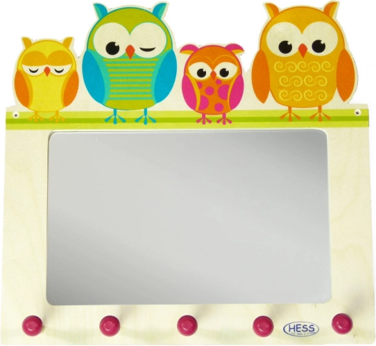 Diese farbenfrohe Garderobe mit dem Motiv einer Eulenfamilie bringt jedes Kinderzimmer oder jeden Flur zum Leuchten. Sie ist mit fünf Haken ausgestattet, die ausreichend Platz zum Aufhängen verschiedener Kleidungsstücke und Accessoires bieten. Der Spiegel aus unzerbrechlichem Plexiglas ist sicher und praktisch.