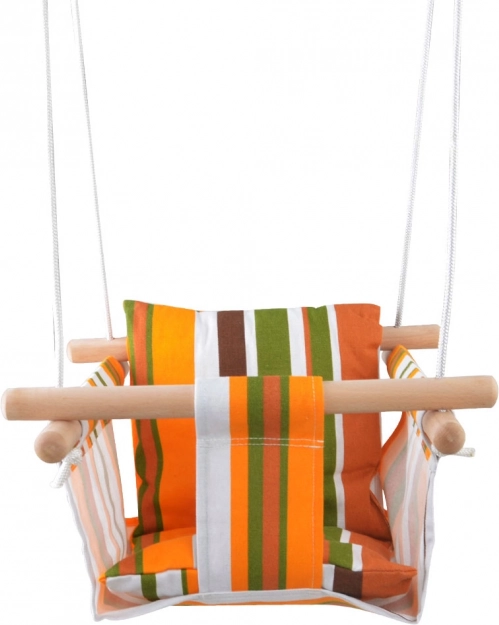Diese gestreifte Kinderschaukel von 2Kids Toys verbindet den Komfort weicher, atmungsaktiver Baumwolle mit der Widerstandsfähigkeit der Holzstreben. Sie ist ideal für Spielspaß im Freien, fördert Gleichgewicht und Motorik und bietet zugleich sicheres und angenehmes Schaukeln für die Kleinsten.