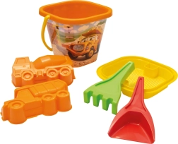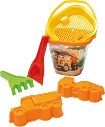 Eimer, Schaufel, Harke, Sieb, 2 Förmchen (Lastwagen, Betonmischer)