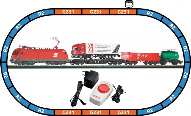 Erwecken Sie Ihre Eisenbahn mit diesem kompletten Startset von Piko zum Leben, das die Elektrolokomotive Taurus ÖBB und verschiedene Güterwagen enthält. Ebenfalls im Lieferumfang enthalten sind eine Lokführerfigur und Beleuchtung mit richtungsabhängigem Umschalten.
