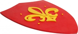 Das kräftige Rot und die gelbe Lilie verleihen dem Schild mittelalterlichen Charme. Passt perfekt zu Kostümen und auch als Deko im Kinderzimmer.
