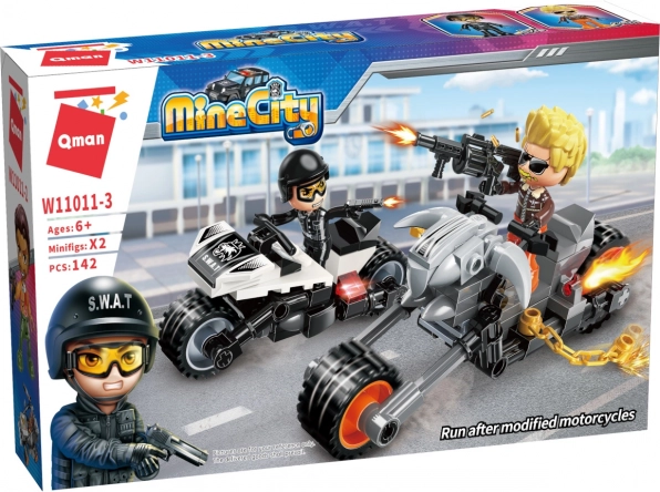 Das Qman MineCity Bauset ermöglicht es Kindern, einzigartige Motorräder zu bauen und Abenteuer mit Figuren zu erleben. Das Set enthält 142 Teile und ist aus robustem ABS-Kunststoff gefertigt.