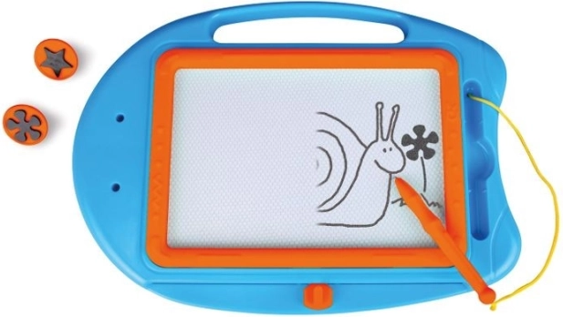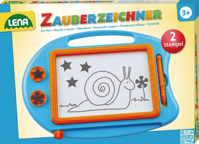 Die magnetische Maltafel LENA ist ein tolles Spielzeug für kleine Künstler. Kinder können immer wieder schreiben, zeichnen und stempeln – ganz ohne Unordnung und ohne Papier. Der beiliegende Stift ist mit einer Schnur fest befestigt, sodass er nicht verloren geht, und mit der Schiebeleiste wird das Bild schnell gelöscht.