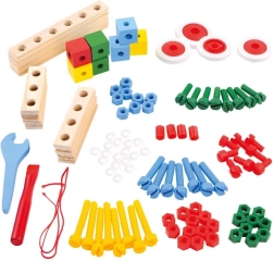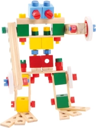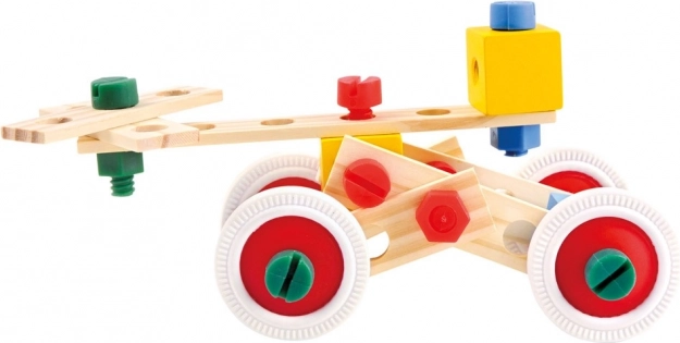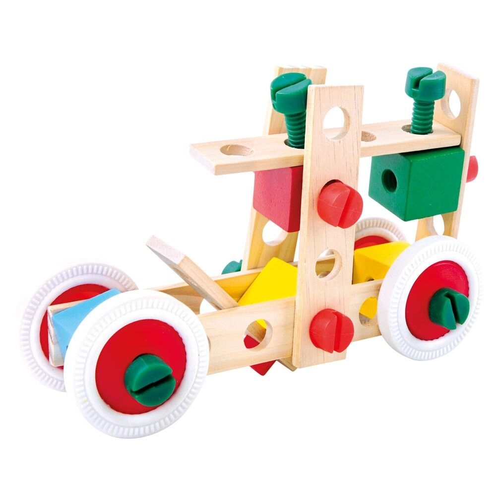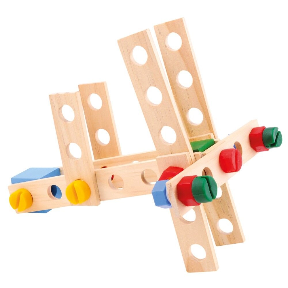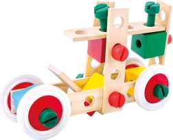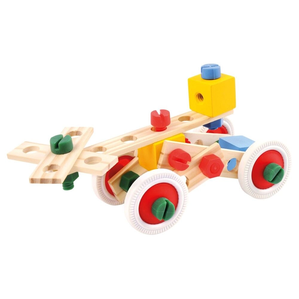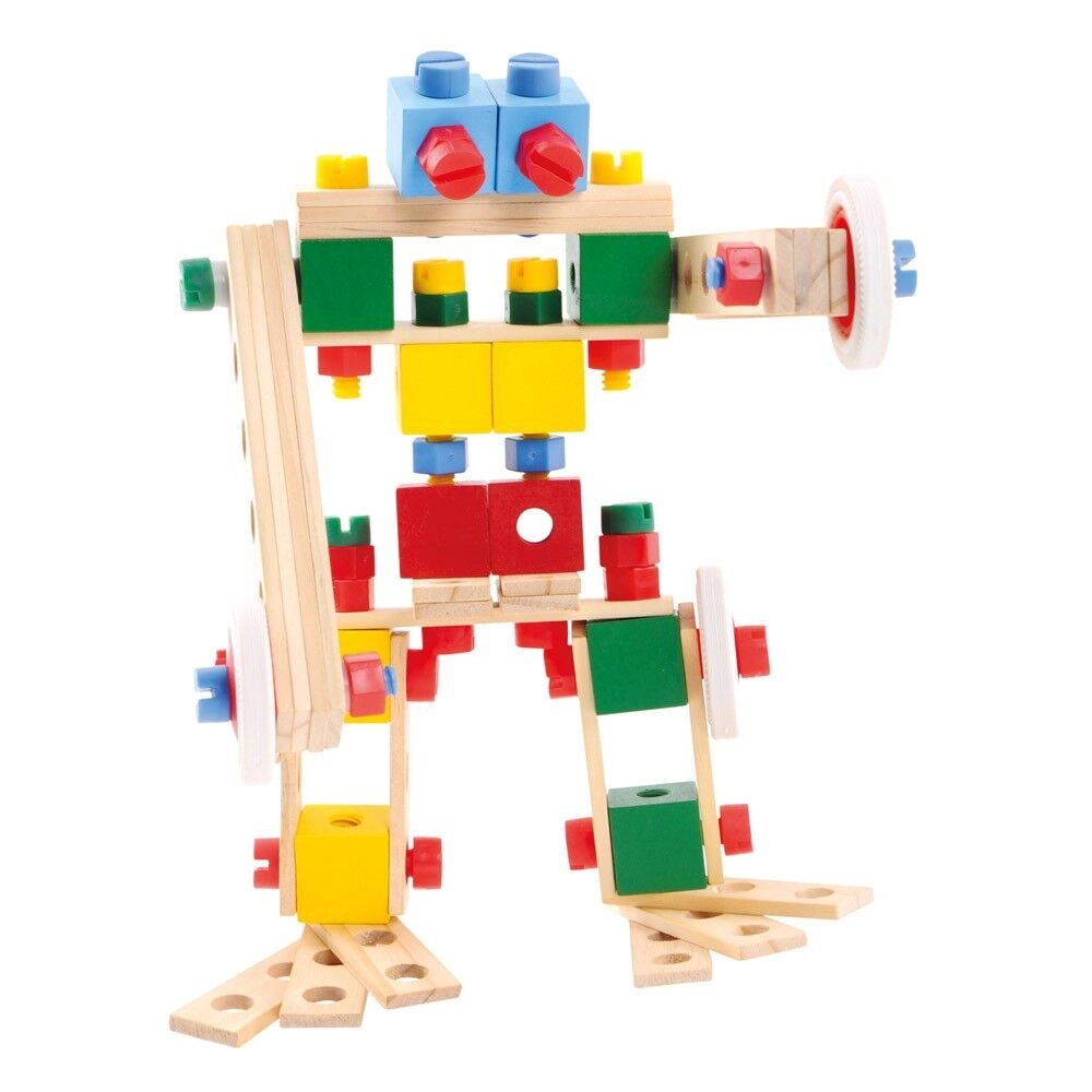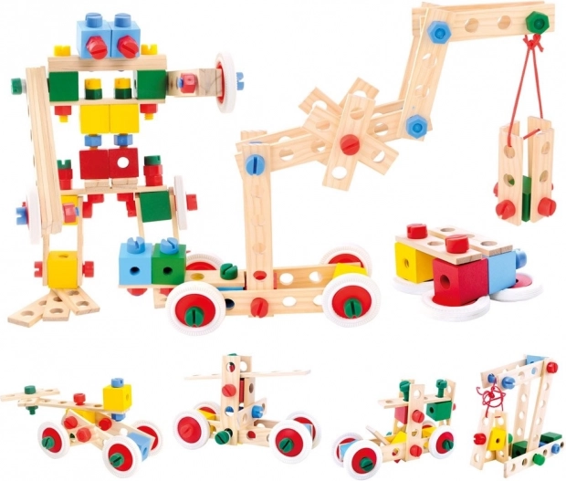 Kombinieren Sie Holzleisten, Bausteine, Räder und bunte Schrauben zu Dutzenden verschiedener Modelle – von Fahrzeugen bis zu Robotern. Fördert Kreativität und räumliches Vorstellungsvermögen.