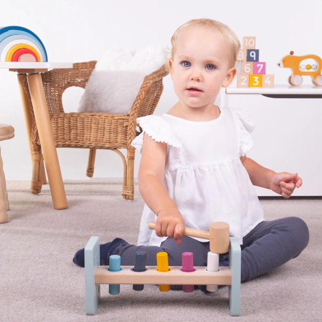 Das Klopfen fördert die Hand-Auge-Koordination, Konzentration und Geduld – das ideale erste Holzspielzeug für Kinder ab 12 Monaten.