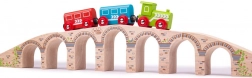 Die BIGJIGS RAIL Brücke verleiht Ihrer Holzeisenbahn beeindruckende Höhe und Länge. Dank der robusten Holzausführung und glatten Verbindungen fahren die Züge flüssig, während unter den Bögen ausreichend Platz auch für hohe Ladungen bleibt. Eine elegante Verzierung, die an Steinmauerwerk erinnert, verleiht dem Set ein realistisches Aussehen.