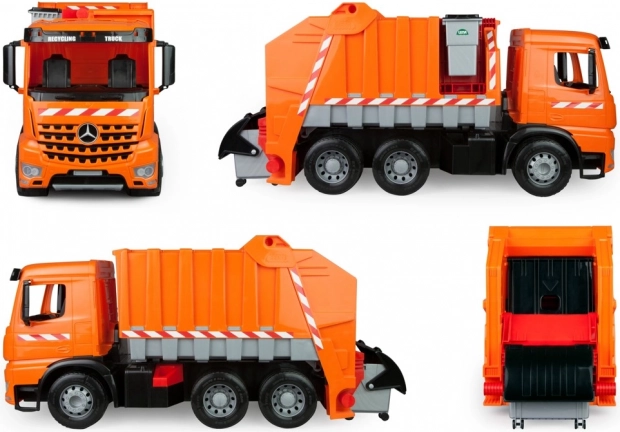 Dieses detailreich gestaltete Müllfahrzeug MERCEDES AROCS fördert die kindliche Fantasie und Rollenspiele. Dank der robusten Ausführung und realistischer Elemente wie dem hinteren Lademechanismus und mobilen Behältern verstehen Kinder spielerisch das Prinzip der Mülltrennung und -abfuhr.