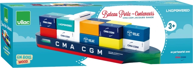 Dieses stylische Holzschiff bringt die Welt großer Häfen ins Kinderzimmer. Dank der 18 magnetischen Container können Kinder die Ladung leicht be- und entladen und trainieren Fantasie sowie Koordination. Das Modell ist von einem echten, mit LNG betriebenen Schiff inspiriert und entstand in Zusammenarbeit mit CMA CGM.