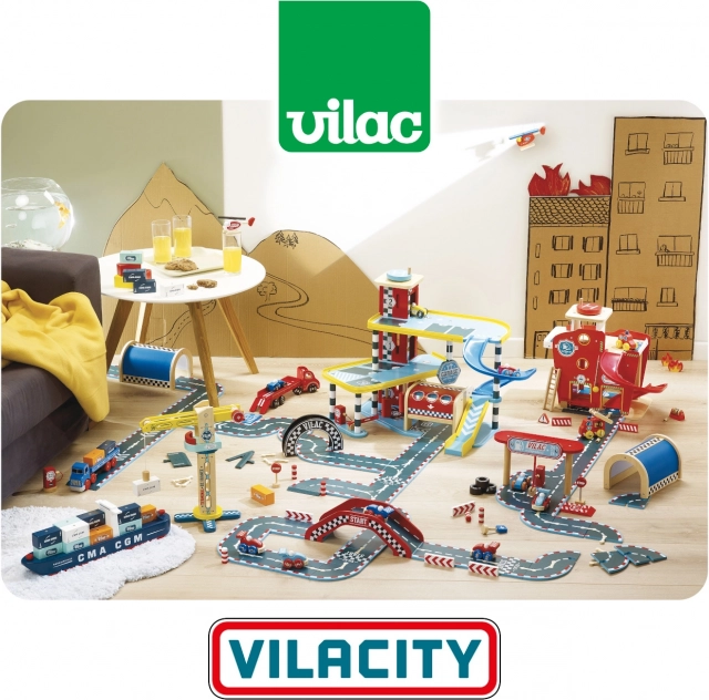 Das Schiff ist Teil der Vilacity-Kollektion und voll kompatibel mit sämtlichem Zubehör. Es lässt sich durch einen Hafenkran oder einen Lastwagen aus derselben Reihe erweitern – für noch realistischeres und vielseitigeres Spiel.