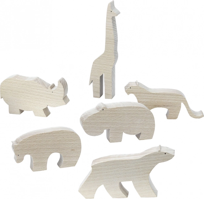 Diese Serie umfasst sechs verschiedene hölzerne Tierfiguren, sodass sich eine vollständige Sammlung zusammenstellen lässt.