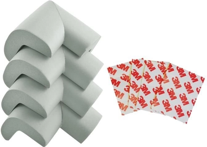 Praktisches Set aus vier Schaum-Eckenschützern sorgt für Kindersicherheit an scharfen Kanten von Tischen, Schränken und Treppen. Der weiche, elastische und wasserfeste Schaum dämpft Stöße, ist leicht zu reinigen und haftet dank des starken doppelseitigen Klebebands fest auf sauberen und entfetteten Oberflächen. Das unauffällige graue Design passt zu den meisten Interieurs.
