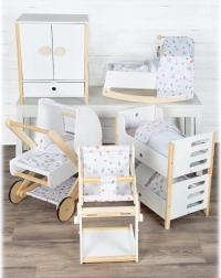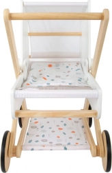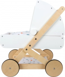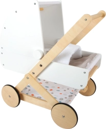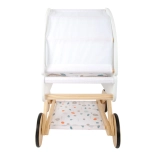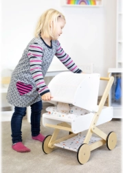 Entdecken Sie einen hochwertigen Puppenwagen, der in jedes Kinderzimmer passt. Er kombiniert naturbelassenes Holz, robuste und abwaschbare Textilien sowie eine sanfte Farbpalette. Das geringe Gewicht und die stabile Konstruktion sorgen für eine sichere Fahrt, während die gummierten Räder für leisen Lauf auf jedem Untergrund sorgen.