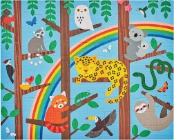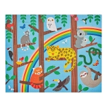 Fröhliche Dschungelbewohner und satte Farben unterstützen die Formwahrnehmung, Konzentration und die Feinmotorik der Kinder.
