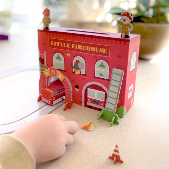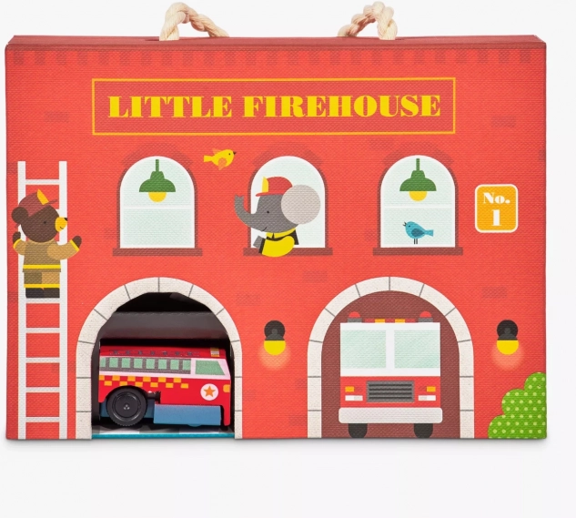 Dieses kreative Little Firehouse-Spielset begeistert alle kleinen Retter. Die beidseitige Feuerwache aus Karton, das aufziehbare Holzauto sowie Streckenteile und Zubehör schaffen eine realistische Kulisse für spannende Spielszenarien. Die Teile sind im Nu zusammengesteckt und sofort einsatzbereit.