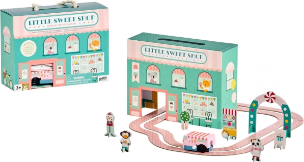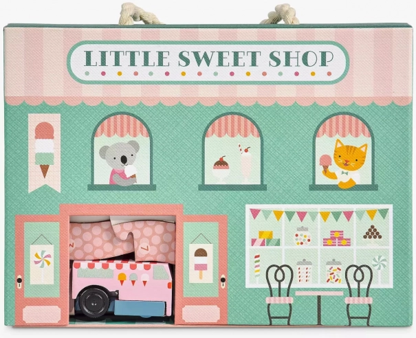 Dieses entzückende Spielset entführt Kinder in eine Welt voller Süßigkeiten und Fantasie. Zieh das Eisdielen-Auto auf, beobachte seine Fahrt rund um die Konditorei und erfinde deine eigenen Geschichten. Dank der kompakten Maße und des praktischen Griffs eignet es sich perfekt für unterwegs.