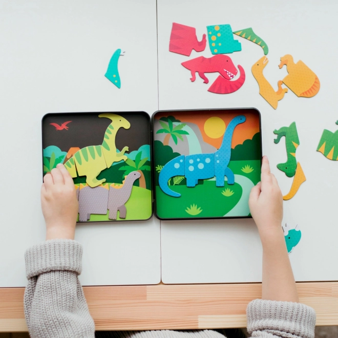 Das magnetische Spielset Dinosaurier von Petit Collage bietet Kindern endlose Kreativität und Spielspaß. Dank der robusten Magnetteile können sie ganz einfach ihre eigenen Dinosaurier und Szenen gestalten, die auf zwei thematischen Hintergründen zum Leben erwachen. Die praktische Metallbox hält alles zusammen und ist perfekt für unterwegs.