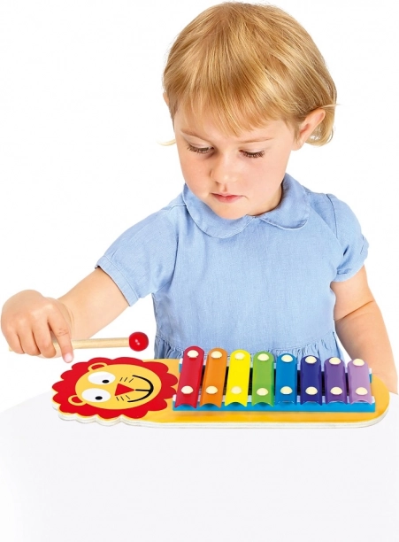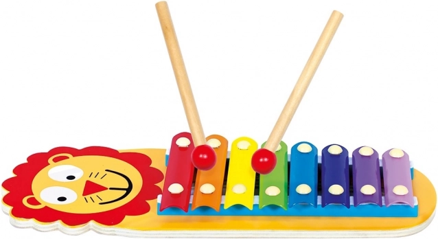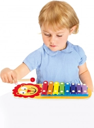 Das Kinderxylophon im fröhlichen Löwenmotiv bringt spielerisches Lernen und kreatives Musizieren. Acht farbige Metallplatten auf einer Holzbasis klingen klar und angenehm, sodass Kinder Töne, Rhythmus und erste Melodien leicht entdecken. Im Set enthalten sind zwei Holzschlägel für bequemes Spiel mit beiden Händen.