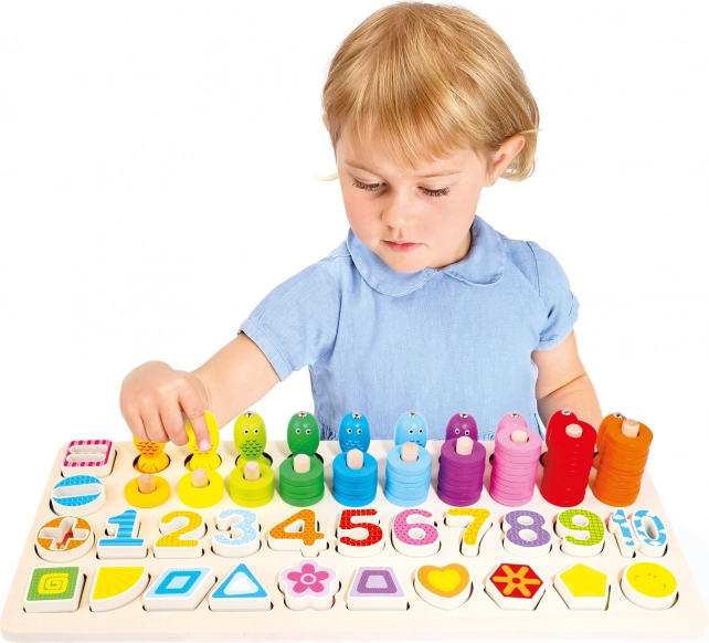 Mit farbigen Formen und Ziffern unterstützt das Spielzeug das Erlernen der Grundlagen des Zählens und das Erkennen von Formen.