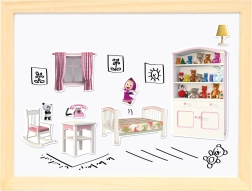 Alle Teile sind in einer leicht tragbaren Holzbox verstaut. Kinder werden fernab von Internet und Tablets unterhalten. Durch die Kombination mit weiteren Artikeln aus der Serie „Mascha und der Bär“ lässt sich das Kinderzimmer in ein wunderschönes Kinderparadies verwandeln.