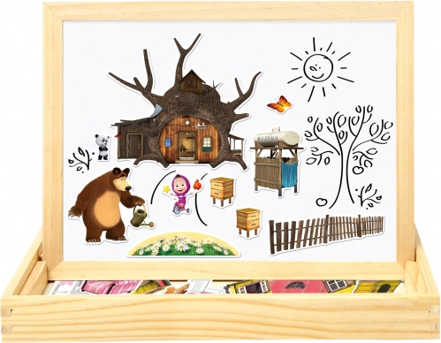 Die zweiseitige magnetische Tafel mit Motiven aus der beliebten Serie „Mascha und der Bär“ bietet endlose Stunden Spaß und Kreativität. Die Tafel ist beidseitig nutzbar: