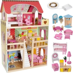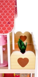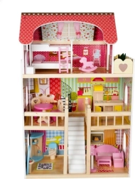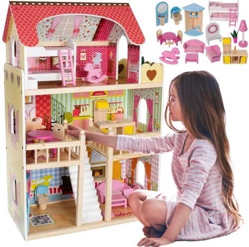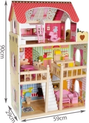 Das Puppenhaus erreicht eine Höhe von 90 cm, was es zu einem der größten auf dem Markt macht. Es ist aus robustem Holz gefertigt, das Stabilität und Sicherheit beim Spielen gewährleistet.