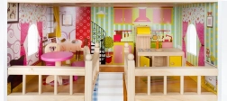 Bunte Gestaltung des Puppenhauses regt die Fantasie der Kinder an, ist dabei aber sanft für die Augen, was lange sorglose Spielstunden garantiert.