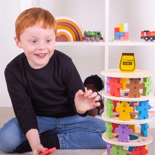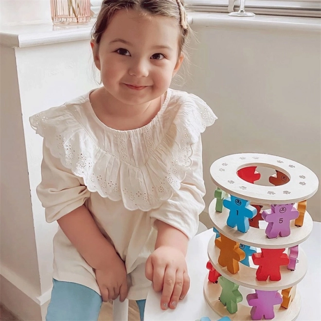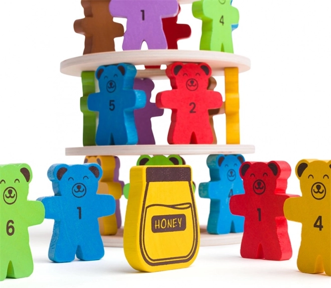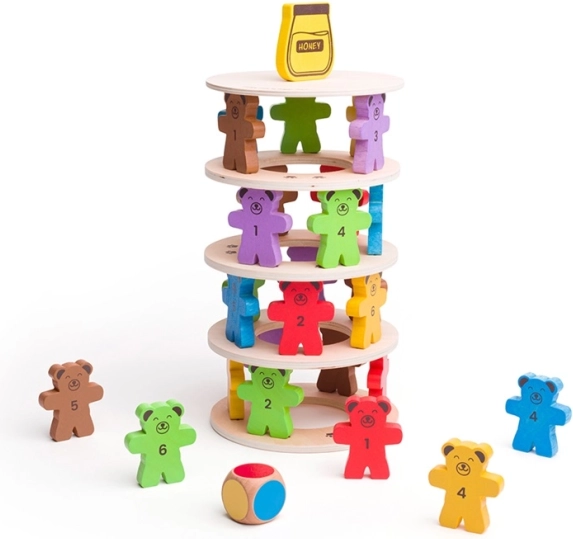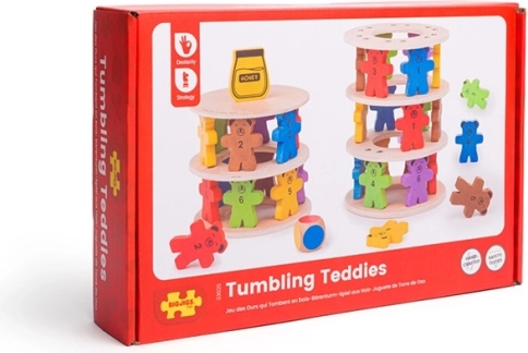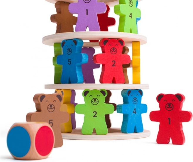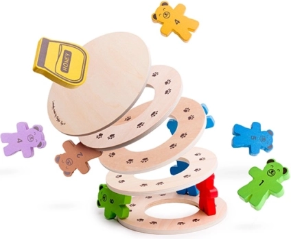 Entdecken Sie den Zauber von Fallende Bären, ein unterhaltsames und zugleich lehrreiches Holzspiel für Kinder. Dieses Spiel hilft, die Feinmotorik, strategisches Denken und die Fähigkeit zur Farberkennung und Zahlenkenntnis zu fördern. Ihr Ziel ist es, den Bärenturm so hoch wie möglich zu bauen, ohne dass er zusammenbricht.
