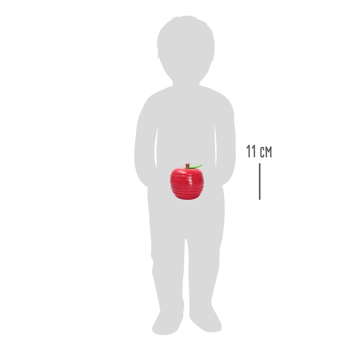 Die robuste Holzausführung mit glatter Oberfläche, Filzblatt und kräftigen Farben sorgt für Langlebigkeit und eine ansprechende Optik. Der zusammengesetzte Apfel wird zur Zierde jedes Regals und ist ein tolles Geschenk für Kinder ab 3 Jahren.