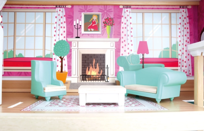 Das Puppenhaus bietet Küche, Wohnzimmer, Badezimmer und Schlafzimmer – alles in farbenfroher Ausführung mit realistischen Accessoires für ein immersives Spielerlebnis.