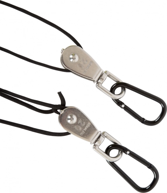 Praktische Karabiner ermöglichen die schnelle Befestigung an Balken, Haken oder provisorischen Verankerungen – werkzeuglos und in wenigen Augenblicken.