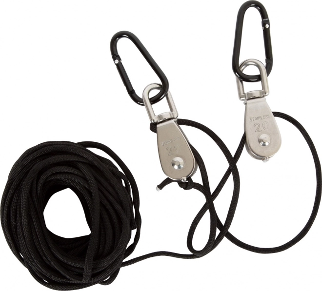 Das lange, robuste Seil ermöglicht bequemes Heben und Absenken der Last aus sicherer Entfernung – ideal für Spielhäuser und Klettergerüste.