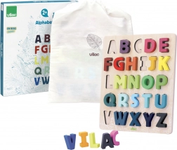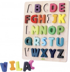 Entdecken Sie eine unterhaltsame Art, das Alphabet zu lernen! Dieses bunte Holzpuzzle hilft, Gedächtnis sowie Hand-Auge-Koordination zu fördern, während Kinder Buchstaben lernen und Wörter bilden.
