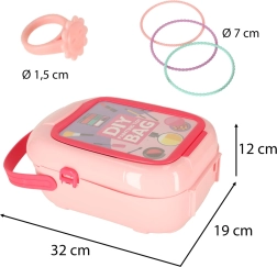 Kosmetik-Set im tragbaren Koffer für kleine Fashionistas und angehende Friseurinnen bringt viele Accessoires für kreatives Spiel: Haartrockner, Kamm, Spiegel, Haarklammern, Ringe, Armbänder sowie bunte Fläschchen. Der Koffer hat ein transparentes Fenster zur Personalisierung – Bild oder Namen des Kindes einlegen und ein einzigartiges Set für Rollenspiele schaffen. Ideal zur Förderung der Feinmotorik und sozialer Fähigkeiten. Enthält keine echte Kosmetik.