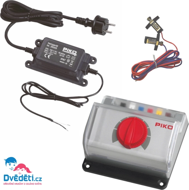 • Im Lieferumfang enthalten sind ein Gleisset, Klemmen, ein analoger Controller und eine Stromversorgung.