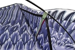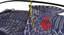 Dank der detaillierten Verarbeitung der gefiederten Muster und roten Akzente sieht der Drachen wie ein echter Raubvogel aus.