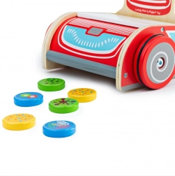 Ein versteckter Magnet an der Unterseite des Staubsaugers erfasst farbige Holzscheiben, sodass Kinder sofortiges Feedback erhalten und ein Spiel erleben, das wirklich funktioniert.