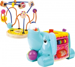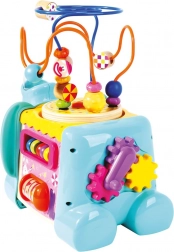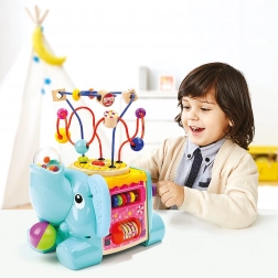 Dieser multifunktionale Motorikwürfel in Elefantenform ist ein ideales Lernspielzeug für die Kleinsten. Dank farbenfroher Elemente und vielfältiger Aktivitäten trainieren Kinder spielerisch ihre Feinmotorik, das räumliche Vorstellungsvermögen und sensorische Fähigkeiten. Der obere Teil besteht aus einem Motoriklabyrinth mit Perlen, die Seiten sind mit Zahnrädern, Schiebeelementen und weiteren cleveren Aufgaben ausgestattet.