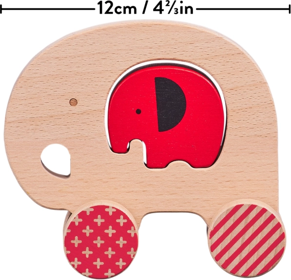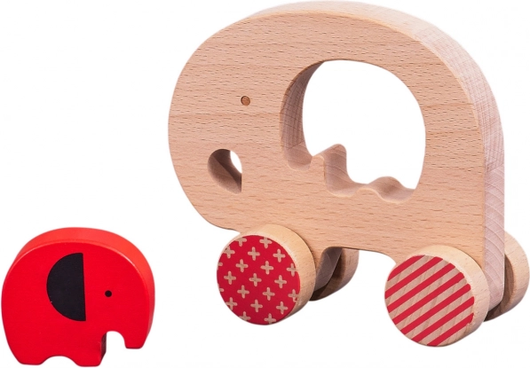 Das Spielzeug fördert Fähigkeiten beim Ziehen und Schieben, trainiert den Griff und das räumliche Vorstellungsvermögen dank des Elefantenbabys, das in die Öffnung in der Mitte eingesetzt wird. Die robuste Konstruktion aus massiver Buche gewährleistet eine lange Lebensdauer und einfache Pflege.