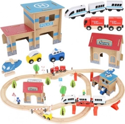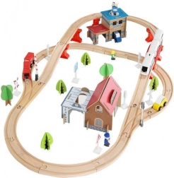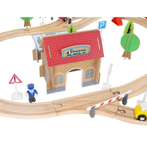 Diese Holzeisenbahn mit Gleisen ist ein perfektes Geschenk, das jedes Kind lieben wird, unabhängig vom Geschlecht. Es ist ein tolles Spielzeug für stundenlange Unterhaltung mit Eltern oder Gleichaltrigen.