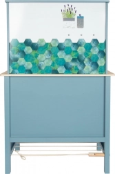 Die Oberflächen in Kühlschrank und Ofen sind mit Küchendetails bedruckt, um mehr Spaß zu bieten. Die beidseitige Rückwand bietet ein modernes Fliesendesign oder ein einfaches blaues Design. Die Küche ergänzt weitere Produkte und Geräte aus der Tasty-Kollektion perfekt.