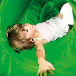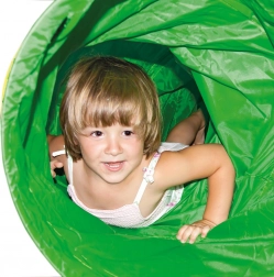 Den Tunnel aus strapazierfähigem Textil falten Sie in wenigen Augenblicken zusammen, und dank des geringen Gewichts lässt er sich leicht vom Kinderzimmer in den Garten bringen.