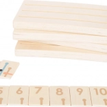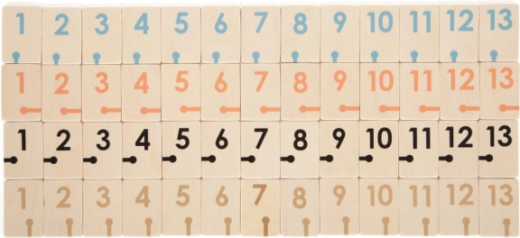Robuste Spielsteine aus Naturholz mit leicht lesbaren Zahlen und Symbolen halten dem täglichen Spielen stand und bieten ein angenehmes haptisches Erlebnis.