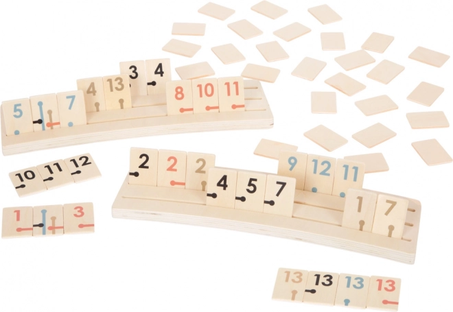 Massive Holzsteine mit Zahlenaufdruck und Symbolen sind klar lesbar und angenehm zu berühren. Für Stabilität und Privatsphäre beim Legen der Kombinationen sorgen die leicht gebogenen Holzablagen. Das Spiel fördert logisches Denken, Strategie und Konzentration bei Spielern jeden Alters.