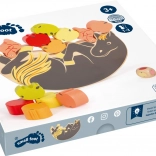 Das Holz Balancierspiel Small Foot bietet großen Spaß für Kinder und Erwachsene. Die Regeln sind einfach - ein Würfelwurf entscheidet, welcher farbige Apfel als nächster auf das Pferd gesetzt wird. Für ein einfacheres Spiel können Sie ohne den Würfel spielen. Dieses Spiel ist ideal für Kinder ab 3 Jahren und im Bauernhofthema mit Pferden und Tieren gestaltet.