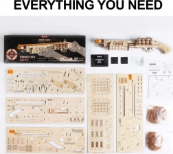 Erwerben Sie einen einzigartigen Bausatz, der Bildung und Unterhaltung in Form einer mechanischen Holzschrotflinte vereint. Freuen Sie sich auf präzise Details und funktionale Komponenten, die Ihnen das Schießen von Gummigeschossen auf Holzfiguren ermöglichen. Dieses Modell ist die perfekte Kombination aus Design und Mechanik, die jeden Modellbauer begeistern wird.